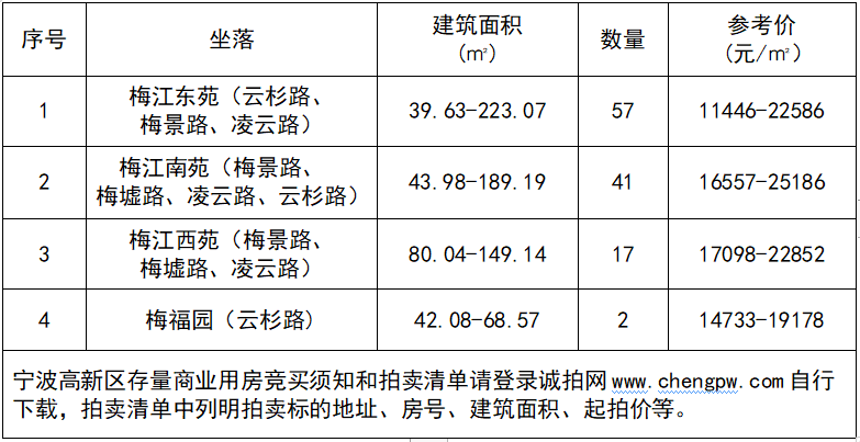一、拍卖标的:宁波高新区存量商业用房117处,保证金15万/标的, 如下表:
