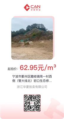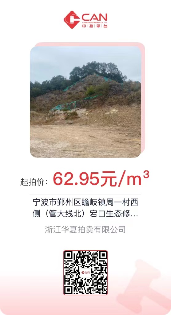 一、拍卖标的:宁波市鄞州区瞻岐镇周一村西侧(管大线北)宕口生态修复治理工程产生的土石方一批,合计预估数量暂定16983m3。起拍价 62.95元/m3(含税),保证金10万元。