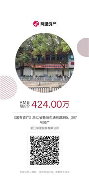 位于衢州市通荷路285、287号,房屋总层数2层,所在层数1-2层,房屋所有权面积498.45平方米、土地使用权面积 83.1平方米的闲置房地产。房屋性质为非住宅,土地用途为金融业。起拍价:424万元,竞买保证金:50万元。